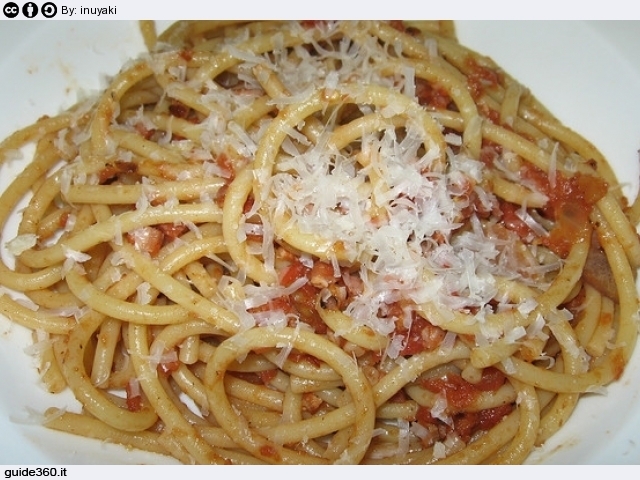 La ricetta originale è nata ad Amatrice (il doppio nome deriva dal fatto che gli abitanti di Amatrice si definivano, nel loro dialetto, “Matricianiâ€, senza la “aâ€), piccola città in provincia di Rieti e prevedeva l’utilizzo degli spaghetti invece che dei bucatini, sorta di spaghetti più spessi e con il buco al centro; oggi l’uso dei bucatini sembra aver perfezionato l’antico sapore, rendendo la pasta ancora più sugosa.