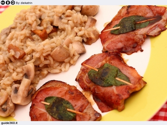 L’attribuzione di questa semplice ma gustosa ricetta è dubbia e oscilla tra la città di Brescia e quella di Roma; sicuramente i saltimbocca si trovano oggi nelle trattorie più antiche e rinomate della capitale e la ricetta è conosciuta a livello internazionale come tipica del Lazio.